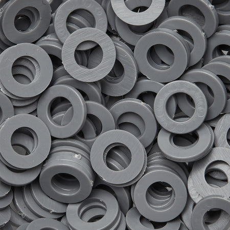 Vlakke sluitringen van PVC (polyvinylchloride) zijn geweldige polymeerringen voor gebruik in omgevingen met hoge UV-straling en toepassingen waarbij grote hoeveelheden water worden gebruikt.